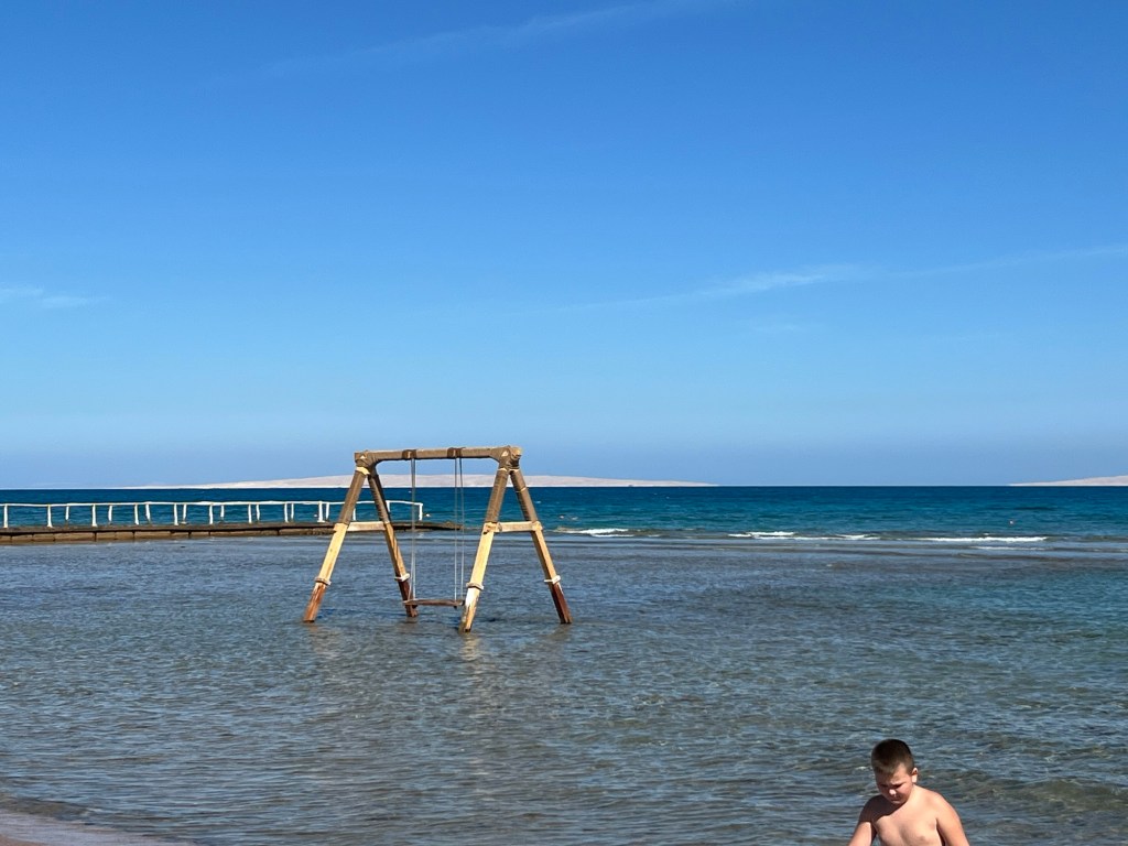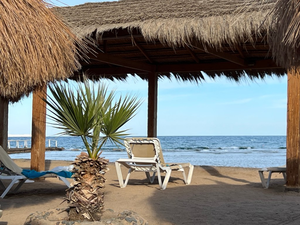 Neuer Tag, neues Glück – nach ein paar Minuten warten wird wieder unser Frühstückstisch frei. Wir frühstücken gemütlich- der Koch macht eigens für mich in einer kleinen Pfanne ein schmackhaftes Omelett. Heute wollen wir das Meer und den Strand erkunden. Die Hotel Anlage ist wirklich groß und so sind es circa 250-400 m zu Fuß bis zum Strand. Dort angekommen überrascht uns die angenehme Atmosphäre .